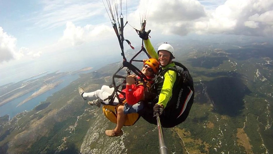 Paragliding Tandem 15-20 min Flight costs 700 Kn / €95. One in-flight picture is included in the price. In flight video available.