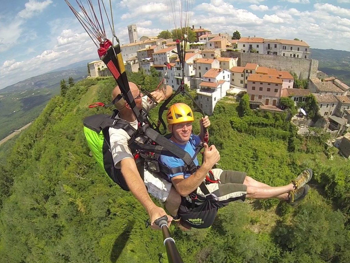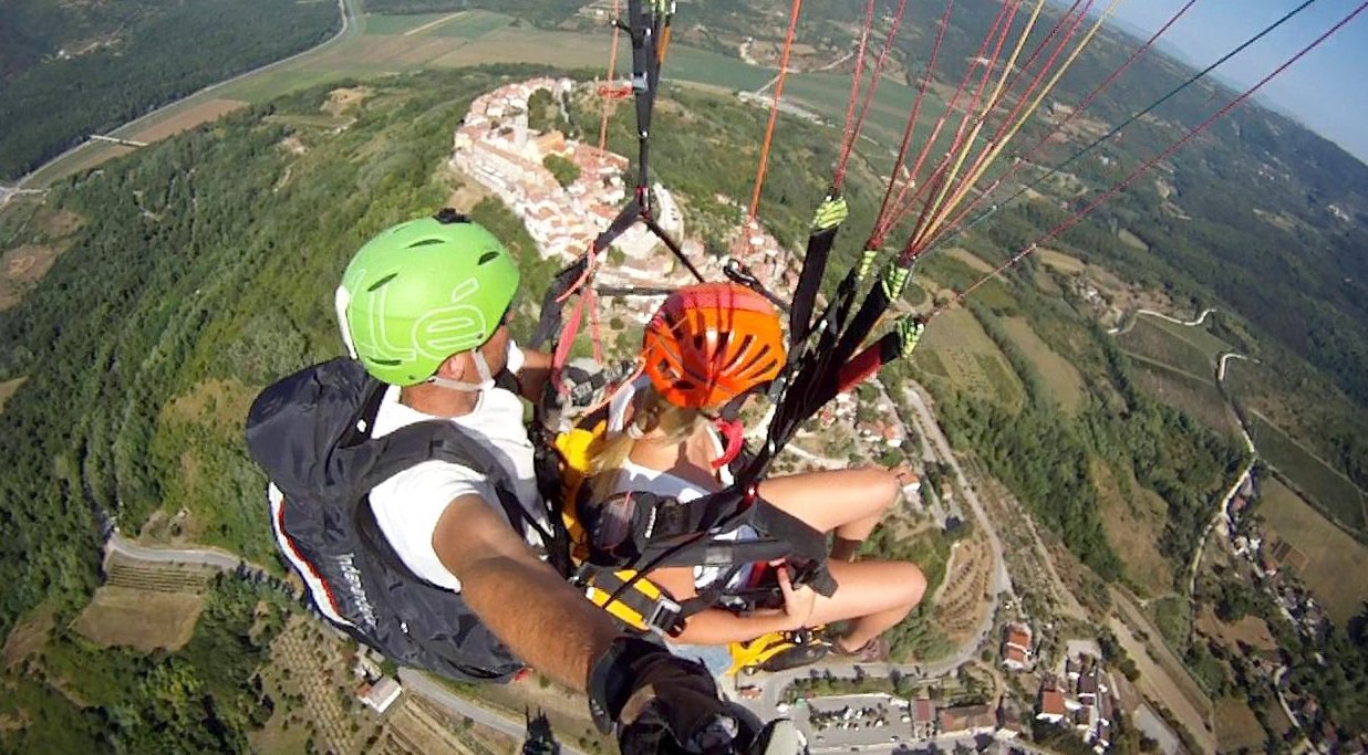 Experience the magic of Istria from the Air. Paragliding Tandem flight in Istria will take you over magical old towns. What better way is there to make your vacation a dream come true?! In a tandem you are able to fly without any previous experience. You will instantly become a part of our team. After a 15 min briefing you get to fly with a highly trained instructor, which is the easiest and safest way to experience the thrill of paragliding.
